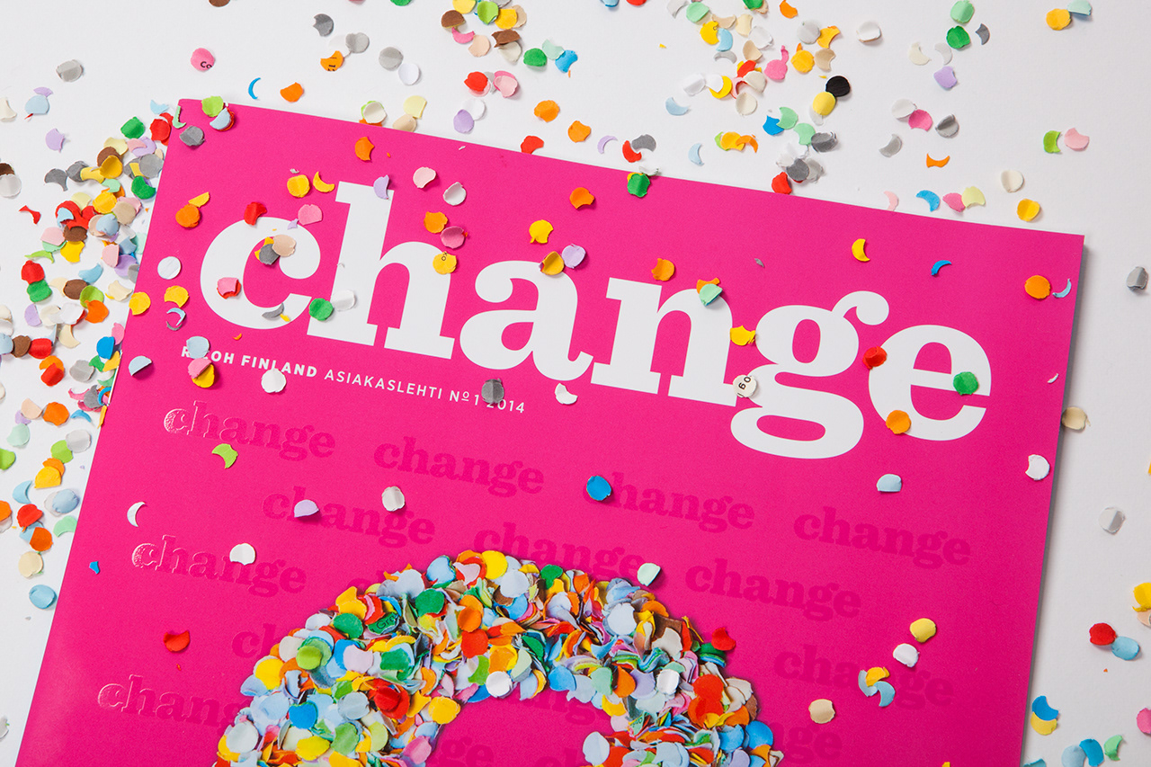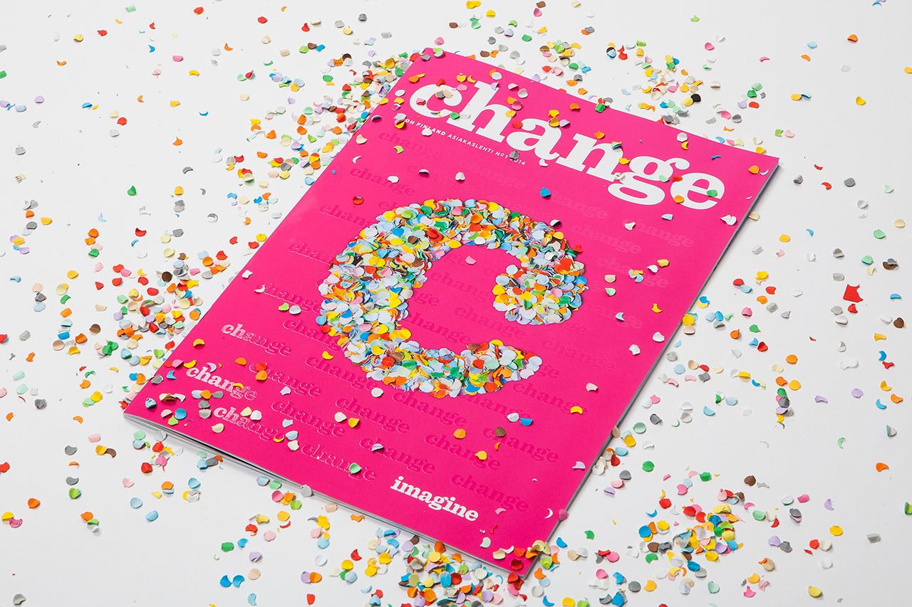 Ricoh on suuri kansainvälinen monialayritys. Suunnittelimme Ricoh Finlandille asiakaslehden ja toteutimme sen sisällön. Lehti on niin sanottu kääntölehti, jonka puolet on nimetty Ricohin slogania mukaillen "Imagine" ja "Change". Työhön sisältyi konseptointi, graafinen suunnittelu, taitto, valokuvaus, kuvankäsittely, haastattelut ja kirjoittaminen.
