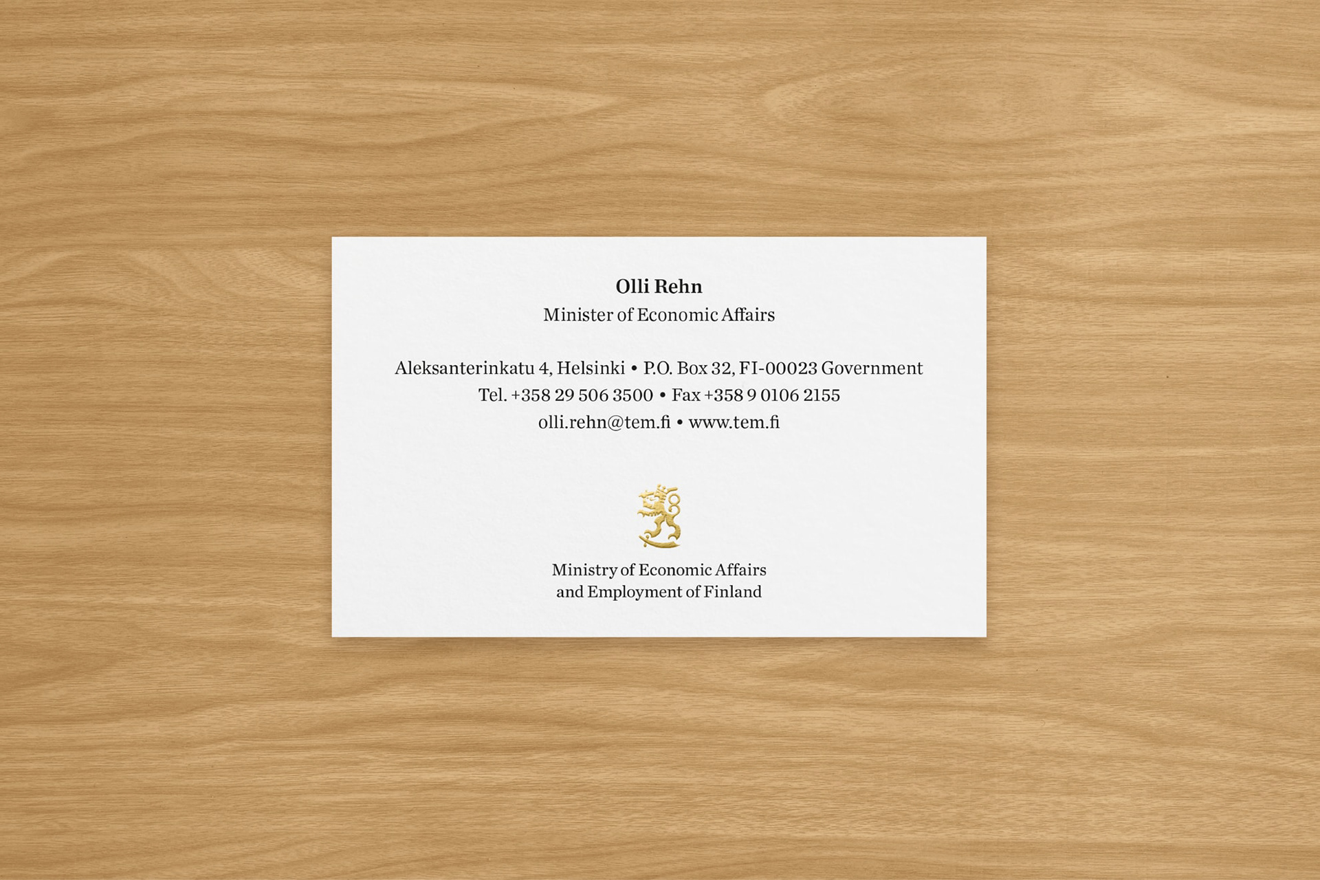 Työ- ja elinkeinoministeriö luo edellytyksiä yritystoiminnalle ja elinkeinoelämälle. Suunnittelimme työ- ja elinkeinoministeriön visuaalisen ilmeen uudistuksen. Uusi leijonamerkki on hyväksytty Heraldisen lautakunnan toimesta. Työhön sisältyi konseptointi, graafinen suunnittelu, typografia ja paljon sovelluksia.